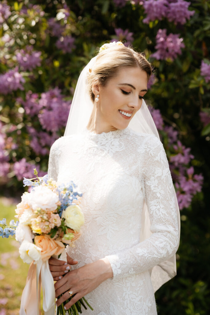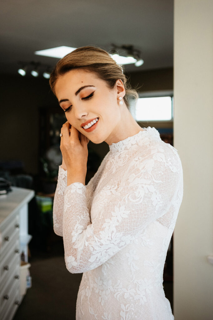 On may 31, 2025, Kira and Esteban shared their love surrounded by family and friends. Kira spent the quiet morning getting ready for herself at home. As her hair and make up were being done, I captured a few intimate images of her. Then it was time for Kira to slip into her dress, a stunning, vintage style gown with sleeves that reached her wrists, it fit her like it was made just for her.
