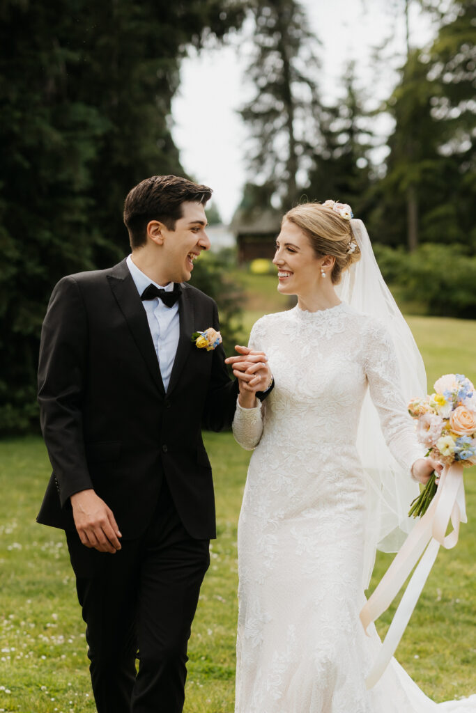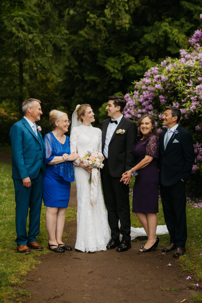 After the ceremony, Kira, Esteban, their family, and I made our way to Dominion park. The park was absolutely stunning, with open grassy fields, vibrant rhododendron blooms, and the soft sound of water flowing through the park. We began with family photos, finding a few open spots that could comfortably fit a larger group. And stayed in the shade where we could, as the afternoon sun beamed down, adding a warm glow to the entire scene.