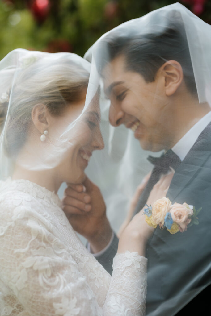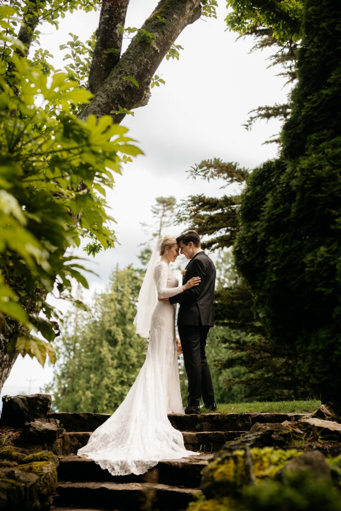 Kira and Esteban said their goodbyes to their family, and then we began their couple’s portraits. We started on a beautiful stone bridge, crafted from irregular rocks that blended seamlessly into the lush greenery around it. As we continued, they mentioned a small area nearby with a tiny waterfall, I said; “we have to go there”. When we arrived I spotted a set of cement stairs tucked beneath a canopy of trees and I had to capture them their! They stood on the stairs as Kira’s dress flowed down, step by step, creating a truly romantic scene.