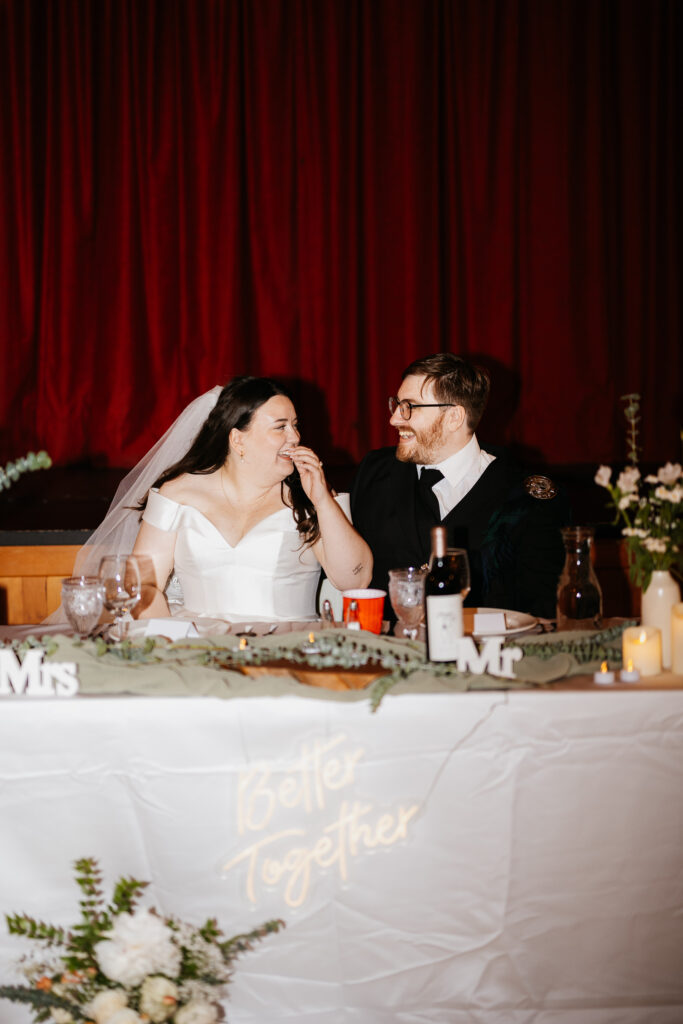 Soon the reception began, friends and family filled the room with heartfelt words of love and admiration for Maggie & Allen. Their dinner was nothing short of spectacular, followed by the sweetest moment, sharing cake together. Just steps away, they shared their first dance, an intimate, beautiful moment. Before inviting everyone to join the dance floor for a night of laughter, joy, and wild dancing. The Laing’s wedding was truly a celebration of love, and one that will be remembered forever.